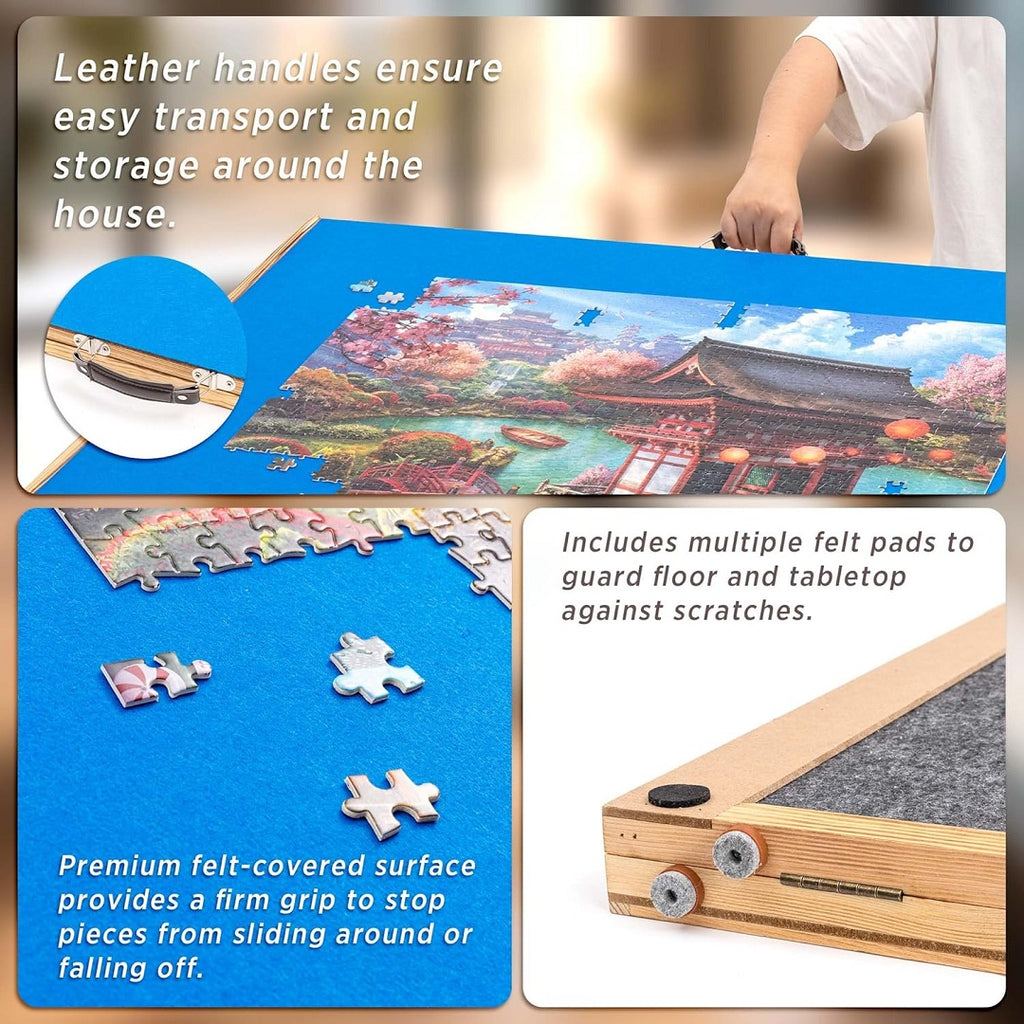 Premium Material - Crafted from durable, eco-friendly pinewood with a high-friction felt surface that prevents piece slippage. Accommodates most 2000-piece puzzles, with a working area of 40.6 × 29.9 in (103 × 76 cm).